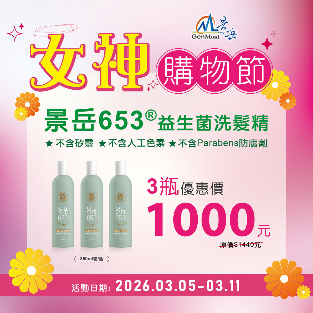 #景岳653益生菌洗髮精(350ml, 3瓶)