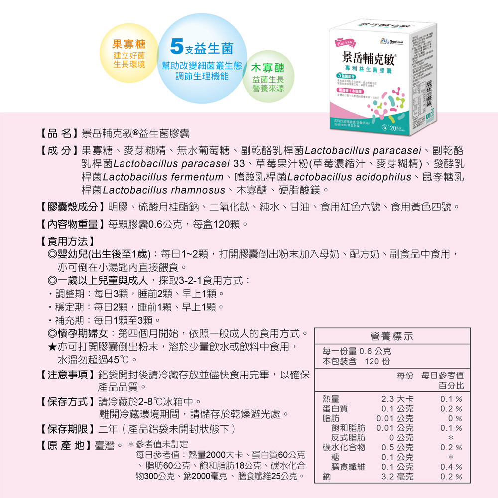 景岳輔克敏®益生菌膠囊(120顆+30顆/1組)